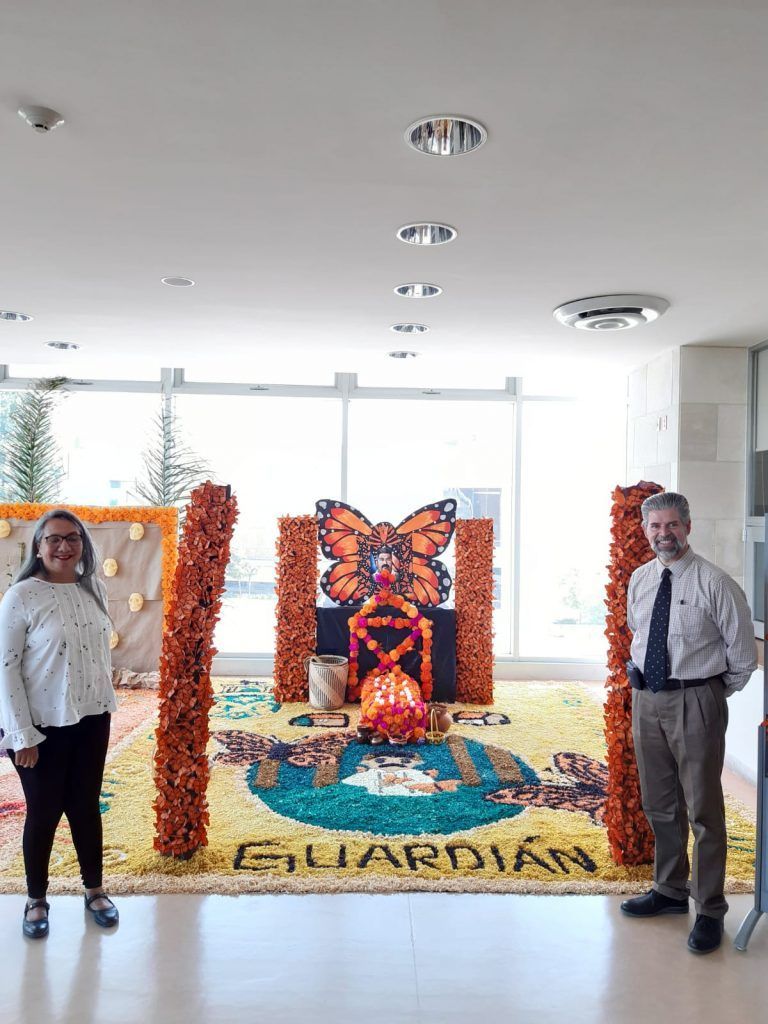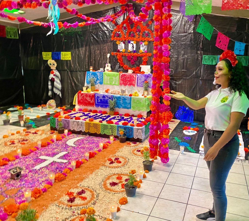 León, Gto. 01 de noviembre del 2022.- Con 27 majestuosas ofrendas prehispánicas y tradicionales, la comunidad educativa de la Escuela Normal Oficial de León, representa la presencia y materializa el símbolo de la vida en la que prevalecen nuestras costumbres mexicanas.